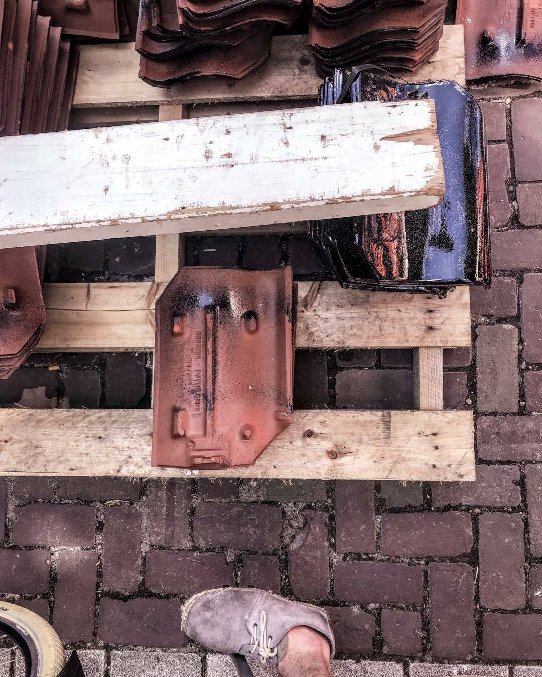 Roof on the ground. From