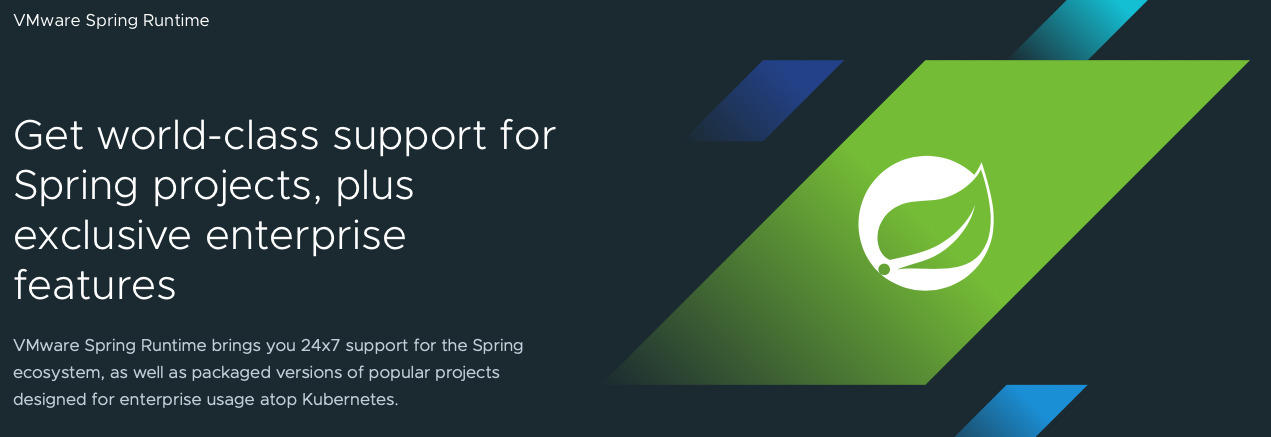 You can buy Spring support now, just on its own, very straight forward and easy. It also includes tcServer, Tomcat, OpenJDK support. Don’t hold me all of this: I haven’t, like, taken the training to know the official menu. I’m just going off the web page.